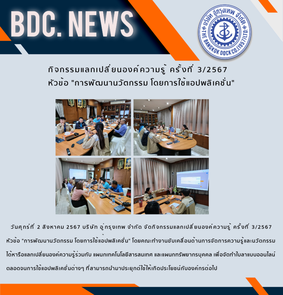 กิจกรรมแลกเปลี่ยนองค์ความรู้ ครั้งที่ 3/2567 หัวข้อ “การพัฒนานวัตกรรม โดยการใช้แอปพลิเคชั่น”