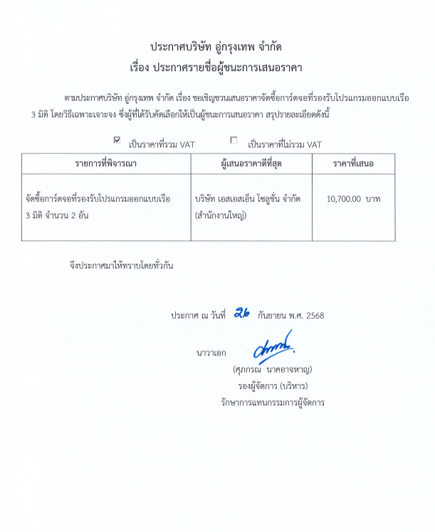 ประกาศ เรื่อง รับสมัครบุคคลเข้าโครงการเรือชุดในตำแหน่งพนักงานธรการ 1