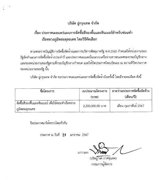 ประกาศเผยแพร่ จัดซื้อสีรองพื้นและทินเนอร์ เพื่อใช้ซ่อมทำเรือหลวงภูมิพลอดุลยเดชBy admin / January 23, 2024