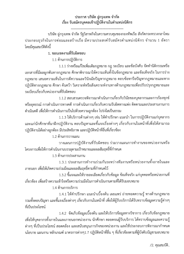 ประกาศ รับสมัครบุคคลเข้าปฏิบัติงานในตำแหน่งนิติกร