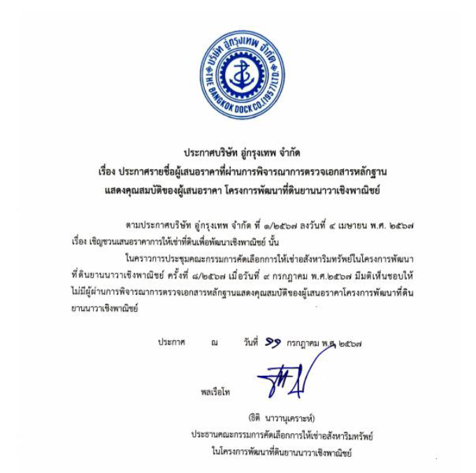 ประกาศ รายชื่อผู้เสนอราคาที่ผ่านการพิจารณาการตรวจเอกสารฯ โครงการพัฒนาที่ดินยานนาวาเชิงพาณิชย ์By admin / July 11, 2024