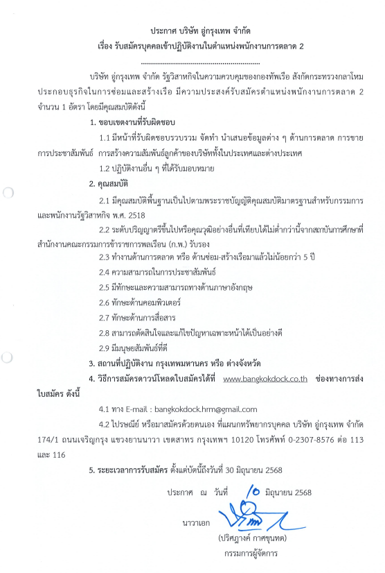 รับสมัครบุคคลเข้าปฏิบัติงานในตำแหน่งพนักงานการตลาด 2