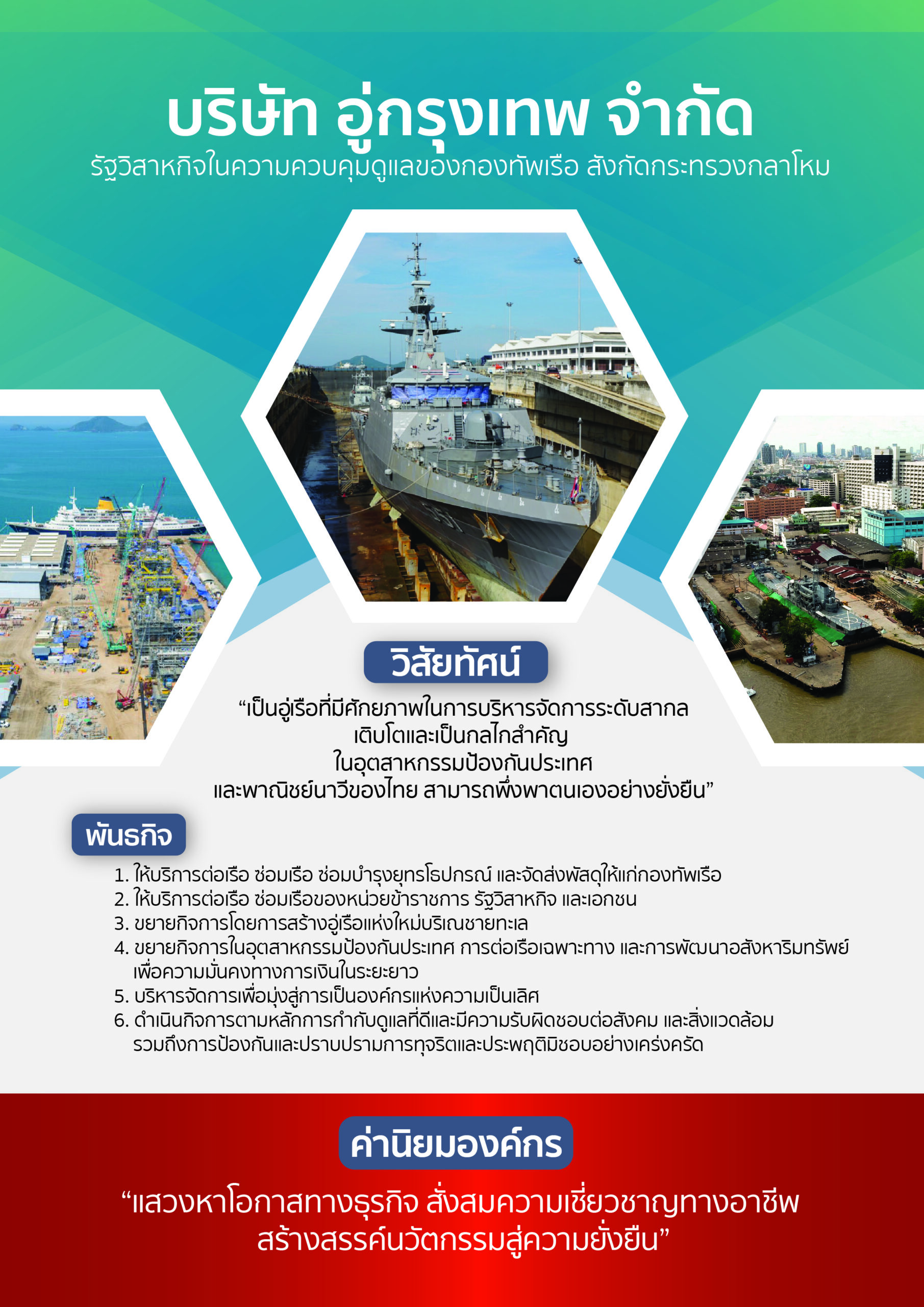 บริษัท อู่กรุงเทพ จำกัด เป็นรัฐวิสาหกิจในความควบคุมของกองทัพเรือ กระทรวงกลาโหม