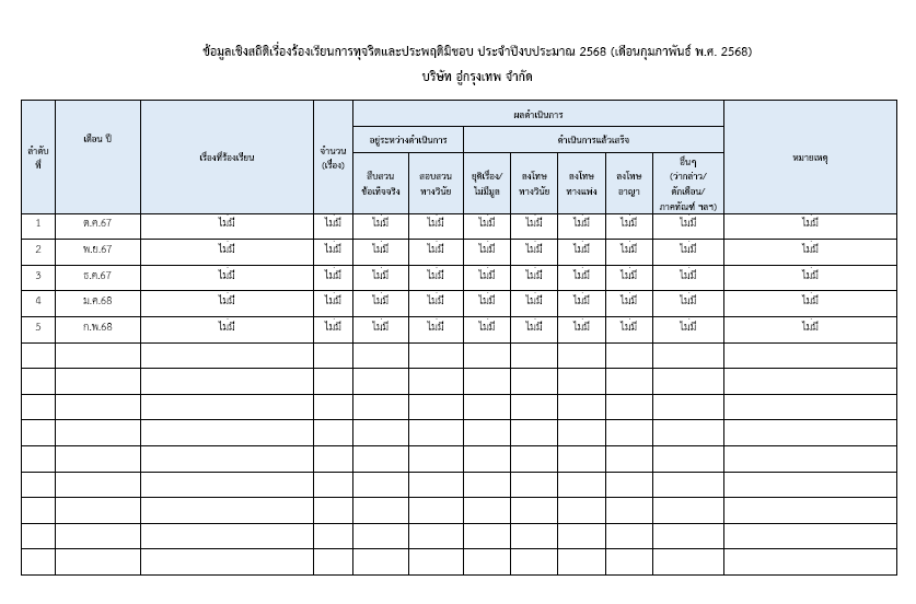 รายงาน การรับข้อร้องเรียนและข้อคิดเห็นต่างๆ เดือน ก.พ.2568
