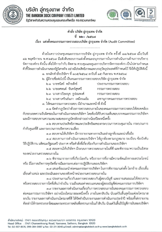 หนังสือ แต่งตั้งคณะกรรมการบริหารโครงการต่อเรือขุดแบบยุ้งดินของการท่าเรือแห่งประเทศไทย
