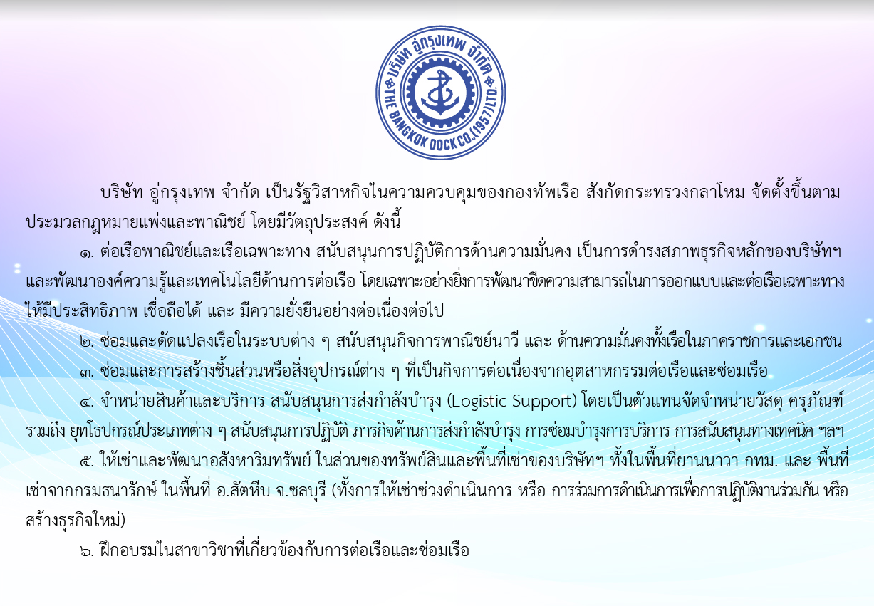 บริษัท อู่กรุงเทพ จำกัด เป็นรัฐวิสาหกิจในความควบคุมของกองทัพเรือ กระทรวงกลาโหม
