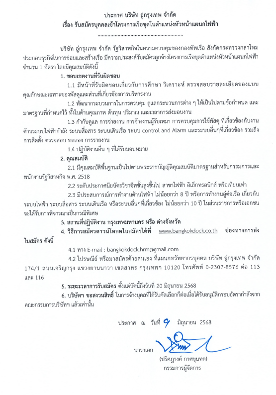 โครงการเรือขุดในตำแหน่งหัวหน้าหมวดงานสนับสนุนและบริการ