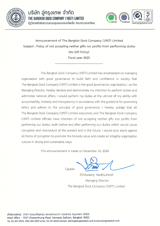 Policy of not accepting neither gifts nor profits from performing duties (No Gift Policy) Fiscal year 2025By admin / January 28, 2025